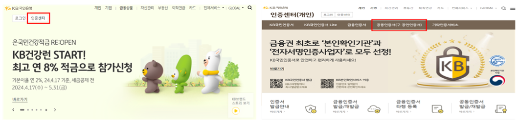 1단계KB국민은행 인터넷뱅킹 및 KB스타뱅킹 신청 후 인증서 발급 완료