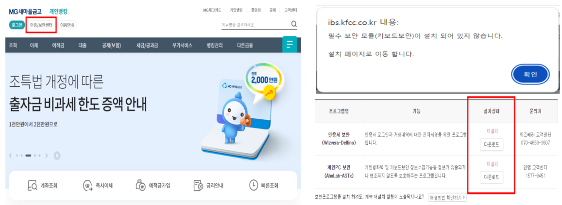 -. 필수 보안 모듈이 설치되어 있지 않다면 설치를 진행해 주시면 됩니다.