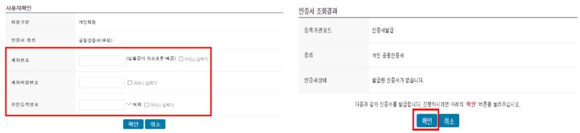 공인인증서를 발급 받기 전 사용자 확인이 필요한데요.