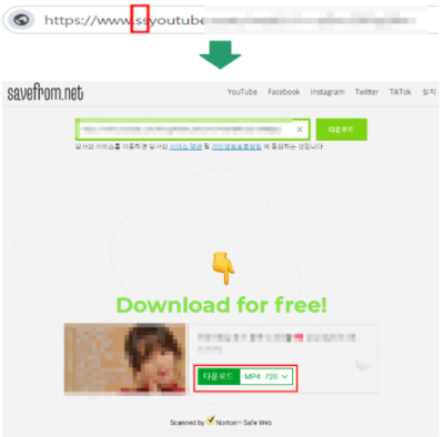 또 다른 방법으로는 유튜브에서 원하는 동영상 주소 창에 유튜브 앞에 "SS"를 붙여 ENTER를 누르시면 바로 다운받는 링크로 이동합니다.