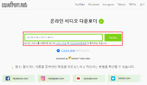 2. 해당 홈페이지에 접속 하여 복사한 링크를 붙여 넣어 줍니다.
