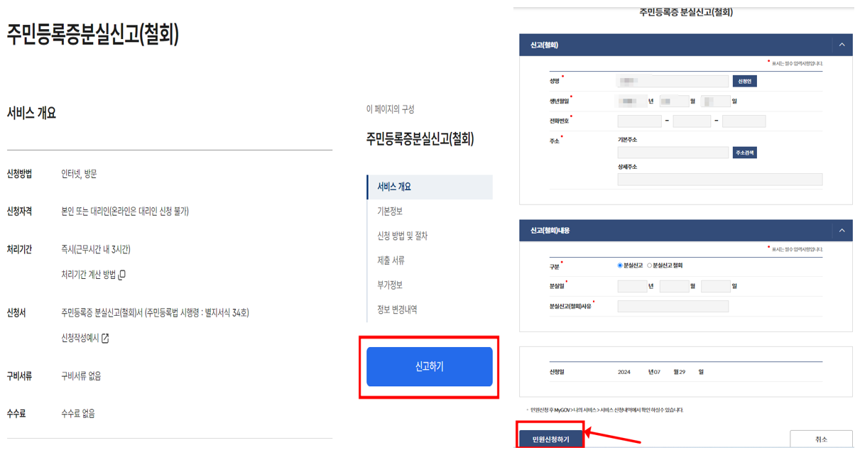 주민등록증분실신고 을 진행합니다.