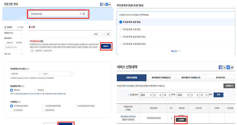 주민등록 등본 온라인신청 3. 등본 확인 및 발급 방법