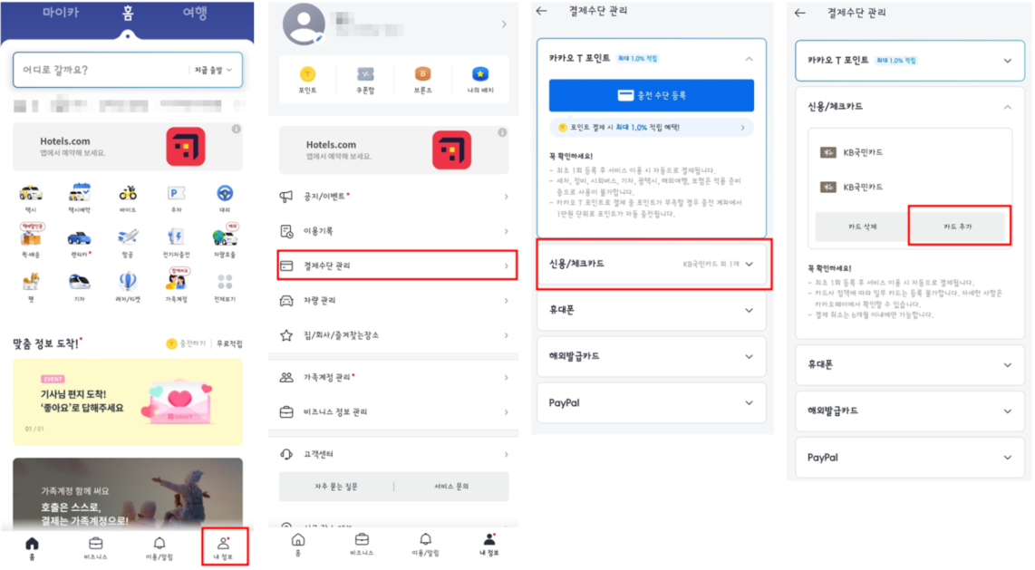 카카오택시 3. 결제 등록방법
