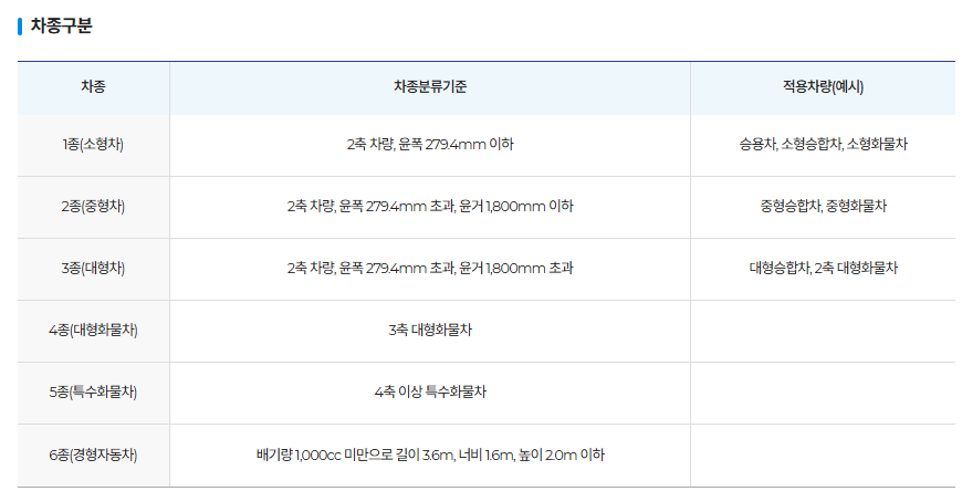 차종구분하여 금액이 측정되지 아래표를 확인해 보시기 바랍니다.