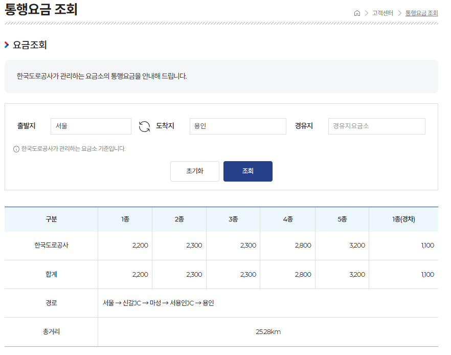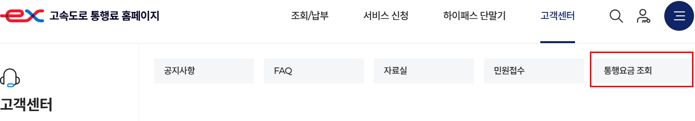 고속도로 통행료 홈페이지에 방문 후 고객센터 항목에서 통행요금을 조회 하실 수 있습니다.