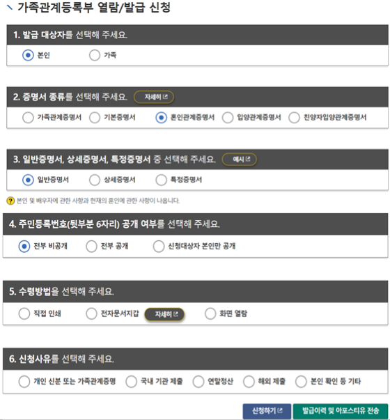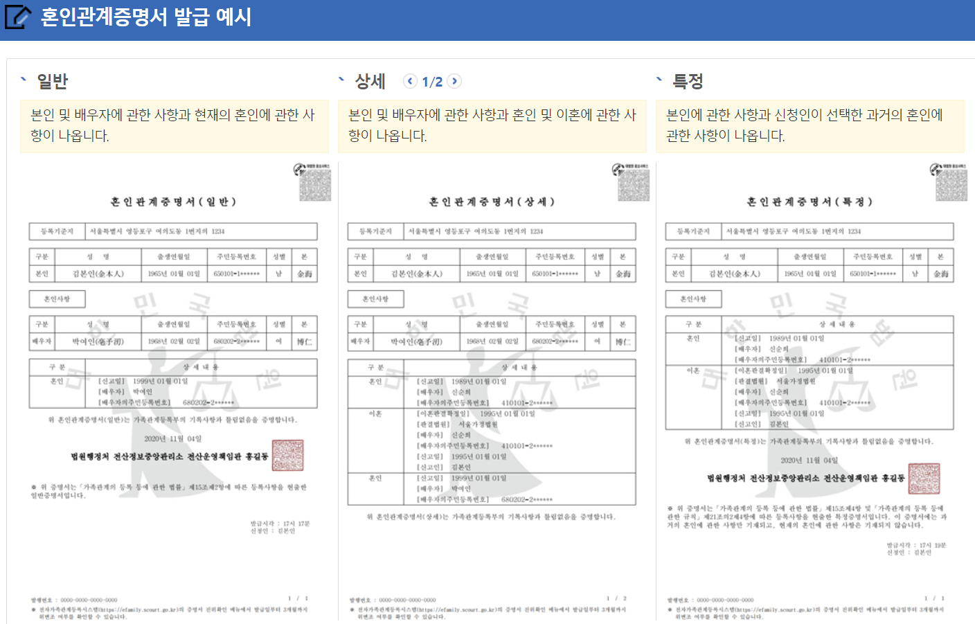 혼인관계 증명서 발급 2. 발급방법 (일반, 상세, 특정)