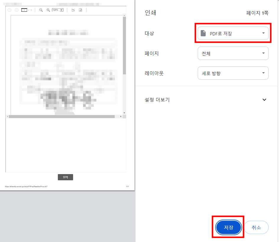 혼인관계 증명서 발급 3. 인쇄 및 PDF 저장 방법