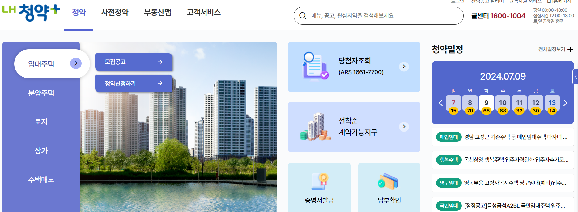 임대 주택 뿐만 아니라 분양주택 , 토지, 상가 등 신청을 진행 할 수 있습니다.