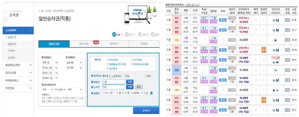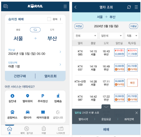 KTX 홈페이지에서 예약 하는 것과 KTX 모바일 앱을 통해 예약하는 것에 대한 차이가 있습니다.