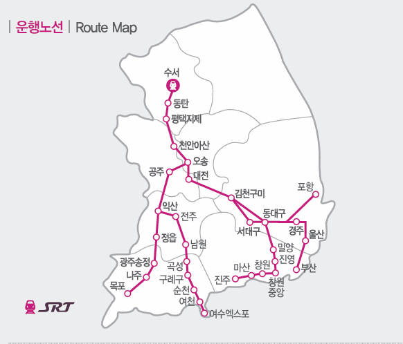 SRT 주로 수도권에서 출발하여 부산, 목포 등 주요 도시까지 도착하는 시간이 매우 짧아 많은 사람들이 이용합니다.