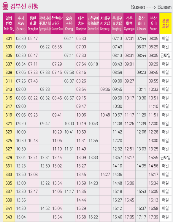하지만 막상 SRT를 타려고 해도, '내가 원하는 시간대에 열차가 있을까?', '수서역에서 부산까지 가는 SRT 시간표는 어떻게 될까?', '경부선 시간표는 자주 바뀌나?' 하는 생각에 머리가 지끈거릴 겁니다.