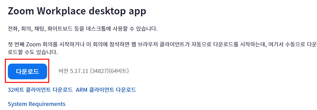 1. zoom 데스크톱 클라이언트를 사용을 진행합니다.