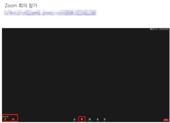 -. 하단에 오디오 및 비디오 시작을 통해 화상과 음성 소통이 가능하며, 채팅 메뉴를 통해 소통이 가능하니 참고하시기 바랍니다.